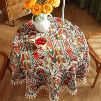 Bohemian Round Geometric Tassel Tablecloth for Dining & Party Decoration