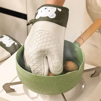 Silicone Heat Resistant Oven Mitts – Thick Insulated Bear Pattern Gloves
