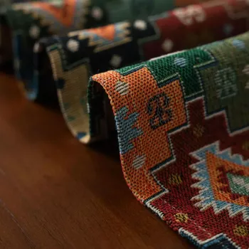 Vintage Geometric Jacquard Table Runner with Tassels - Elegant Dining Decor